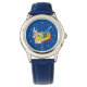 Kinderuhr aus Edelstahl mit blauem Lederarmband