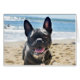 Ein niedlicher französischer Bulldog am Strand