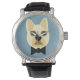 Uhr, Vintage Männeruhr mit schwarzem Lederarmband