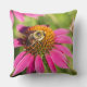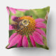 Bring the beauty of a summer garden into your home with this stunning throw pillow. Featuring a high-definition macro shot of a fuzzy bumblebee landing on a brilliant pink coneflower, this piece captures the intricate details of nature in vivid color.