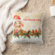 Das zauberhafte weihnachtliche Kissen mit seinem zauberhaften, sonnigen Hasen, der an einer Weihnachtsmannmütze zwischen einer Garne aus Pfefferminz, Zimtsticks, orangefarbenen Scheiben und einem Lebkuchenmann sitzt. Die Farben sind goldbraun, rot, weiß, grün und orange. Genießen Sie dieses Weihnachts- / Feiertagskissen die ganze Saison!