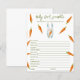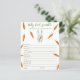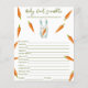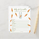 Geschlechtsneutrale Babydusche Mit dem Sprichwort "A LITTLE BUNNY IS ON THE WAY!", eine Illustration eines Aquarellhasen (Kaninchen) mit Karotten in Pfoten und vielen orangefarbenen Karotten. Matching-Elemente verfügbar. Antworten: KREISE, KREUZEN, SCHNULLER, FLASCHE, NACHTLICHT, LULLABY, STROLLER, EPIDURAL, BURP, HOCHSTUHL, DIAPER BAG, SCHWIMMBAD