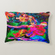 Ein heller und bunter abstrakter Irisentwurf füllt den Raum auf beiden Seiten von diesem Blumenkissen.