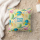 Farbenfrohe, moderne Ostereier-Muster mit Farbspritze in verschiedenen Farben. Ein rundes Abzeichen mit Happy Oaster Skript. Personalisieren Sie den Text, indem Sie ihn ändern.