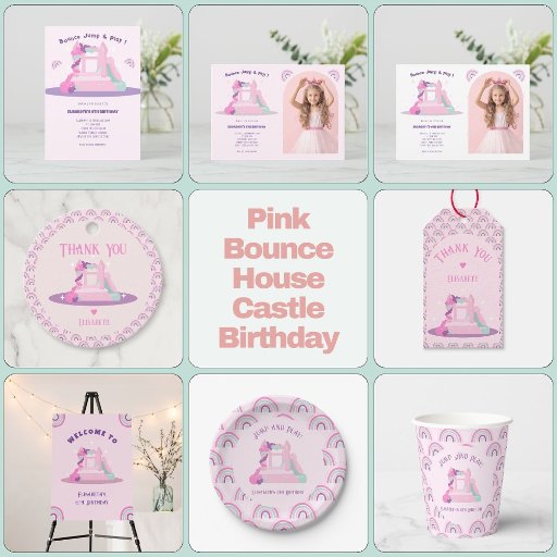 Bringen Sie den Zauber eines Märchens mit unserer Pink Bounce House Burg zum Geburtstag Ihrer kleinen Geburtstagsfeier! Diese bezaubernde Einladung besticht durch ein zauberhaftes, rosafarbenes Schlosshaus, das die Bühne für einen Tag voller Lachen und Spaß bietet. Personalisieren Sie die Details und machen Sie die Geburtstagsparty Ihres Kindes zu einem wahrhaft königlichen. Mit lebendigen Farben und erstklassiger Qualität ist diese Einladung der perfekte Weg, um Freunde zu einer aufregenden Zeit einzuladen!