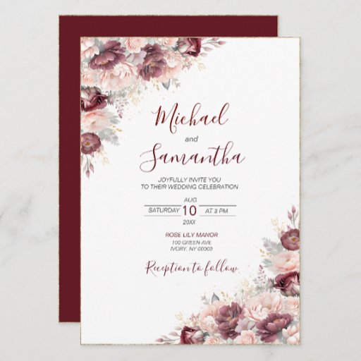 Burgund Blush Peony und Rose Hochzeit Einladung