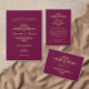 Elegante Hochzeitspapiere in bordeauxfarbenem, goldenen Rahmen, Teller