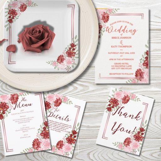 hochzeitbordeaux und roseblumenreichvintagaquarellgestaltungrotgoldhandschriftscript schriftartrot rosa schöne blumename