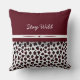 Dieses auffallende Kissen mit einem kühnen Leopardenprint in Schwarz-Weiß-Tönen, das mit seinen bräunlichen Flecken besticht, verleiht dem Ganzen eine wilde Seite. Der obere Teil des Kissens ist solide bordeauxrot, elegant mit "Bleibe Wild" in einem fließenden Drehbuch eingeschrieben, Set über einem ausgeklügelten weißen horizontalen Streifen. Ideal, um Ihrem Wohnzimmer, Schlafzimmer oder jedem Raum, der einen Pop an Persönlichkeit benötigt, eine Touch von ungezähmter Eleganz und Komfort hinzuzufügen. Dieses Kissen aus weichem, langlebigem Stoff ist sowohl für Stil als auch für Entspannung konzipiert.
