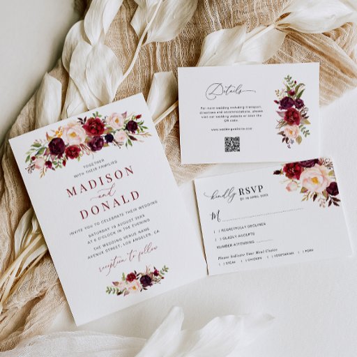 Modernes, bordeauxrotes und rot-bläsernes Hochzeitsdiagramm
