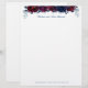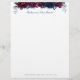 A watercolor floral letterhead stationery featuring watercolor-painted sapphire blue and burgundy peonies with navy blue eucalyptus greenery.