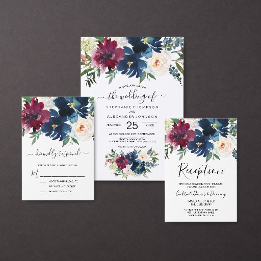 Burgundy Navy Flowers Wedding CollectionDesignt von Ioana Hraball