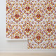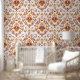 Burgundy Orange White Damask Floral Peel and stick Tapete