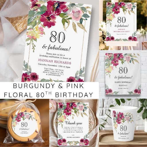 Burgundy Pink Floral 80th BirthdayDesignt von Natalie