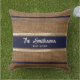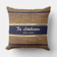 Burlap Rustic Brown Navy Blue Custom Familienname Kissen