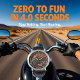 This close-up image showcases a striking watch face with a dynamic illustration. A detailed motorcycle, engulfed in vibrant orange and red flames, is centered on a dark background. The fiery motif emphasizes speed and power, while clear silver numbers and watch hands provide functionality, creating a bold and eye-catching accessory for motorcycle enthusiasts.