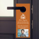 This professional realtor door hanger is custom made with your real estate company name along with modern cursive script for house selling documents. These chic custom burnt orange realty business promotional items feature a house logo image for home builder or realty listing agent company marketing.