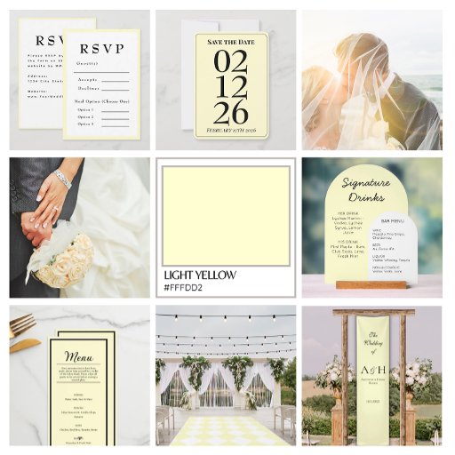 Butter Yellow Timeless Wedding invitation RSVP Cards. Create a custom wedding invitation and rsvp cards for a beautiful wedding using a personalized template to send to guests. Budget DIY wedding invitations with quality printing or instant digital download file.