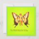 Ein surreales Bild zeigt eine Frau mit Schmetterlingsflügeln, begleitet von einem Text, der die Natur ihrer Realität und Identität hinterfragt. Der Hintergrund ist eine solide Farbe, die den surrealen und kontemplativen Charakter der Komposition verstärkt.