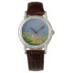 Klassische Damenuhr mit braunem Lederarmband