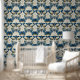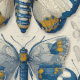 Beautiful blue, off white and gold moth-butterflies with hand drawn descriptions perfect for a den, library and bedroom wallpaper.