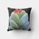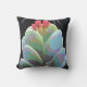 Das farbenprächtige, abstrakte Design von ZoeSPEAK auf diesem Kissen begann als Originalfoto einer Kakteen-Pflanze. Die Blätter sind glatte Scheiben in Aqua-Blau, Salbei, Lavendel und tief lila. Die rosa, hellrosa Blume dominiert die Decke der Pflanze, und ein fast schwarzer Hintergrund vervollständigt dieses moderne Design.