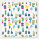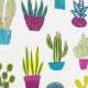 Kakteen, Sukkulente Pflanze und Häuser in magentafarbenem Rosa und Grün auf weißem Hintergrund. Originelle Kunst von Nic Squirrell.