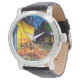 Uhr, Vintage Männeruhr mit schwarzem Lederarmband