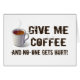 " Geben Sie mir Kaffee und niemand erhält verletzt!" Diese und das Bild einer dämpfenden heißen Schale milchigen Kaffees erklären sogar der stummsten Person zu Hause oder in Ihrem Büro, dass Sie einen Schuss von caffein benötigen! Ein lustiges Sprichwort für Kaffeesüchtige in beunruhigtem Schriftart