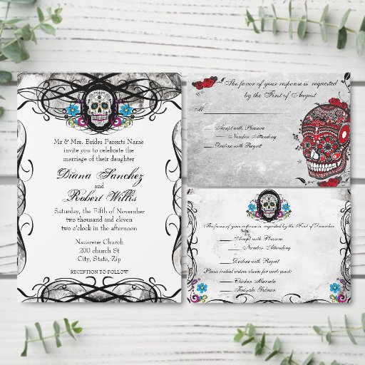 Calaveras Sugar Skull & Schnörkel Empfang Card Begleitkarte