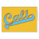 Cali, Kalifornien Beach Surfer Logo Kunst in klassisch Himmelblau und neongelb, alte Schule Buchstaben mit einem Swoop. Surft mit unserem lustigen, funky, Retro-Design-Typ. Von AngelCityArt.