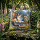 In dieser traumhaften, blumengeschmückten Veranda befindet sich ein Schlafraum für eine Calico-Katze auf sonnenüberfluteten Holztreppen, umgeben von Töpfen, Efeu und Wildblumen. Die Szene, die das Wesen der Kernästhetik erobert, lädt zu einem Gefühl der Wärme und Entspannung ein, mit sanftem Sonnenlicht, das spielerische Schatten über die gemütliche sommerliche Umgebung wirft. In einem Aquarellstil vermischt die Komposition natürliche Texturen mit zarten botanischen Details und schafft so einen beruhigenden Moment der Stille und Zufriedenheit. Dieses Kunstwerk ist perfekt für Liebhaber von charmanter Gartendekoration und skurriler Landschaft geeignet und bringt friedliche, faule Katzennachmittagsenergie in jeden Raum. AI generierte Kunstwerke.