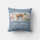 Modern Fun Calligraphy Script 3 Foto Happy Holidays Pillow - Dusty Blue Background