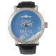 Uhr, Vintage Männeruhr mit schwarzem Lederarmband