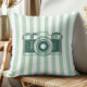 Camera on Sea Green Stripes, Accent Pillow, Kissen