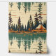 Wenn Sie Tapeten mit Stock und Schale in einer Hütte oder Camping-Thema Sommerhaus suchen, dann gehen Sie hier. Diese Grafik ist grün und bräunlich Vintag und ist ein wiederholtes Muster von Zelten und Kiefern mit einer Reflexion im Wasser.