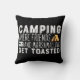 Ein lustiges Typografie-Design mit Zelt und Camper, das lautet: "Camping: wo Freunde und Marshmallows toasted".