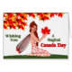 Niedliche kanadische Pixie mit einem roten Ahornleaf. Im Text heißt es, Ihnen einen magischen Kanada-Tag wünschen. Passen Sie die Gruß-, Nachrichten- und Unterschriftenbereiche an.