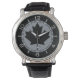 Uhr, Vintage Männeruhr mit schwarzem Lederarmband