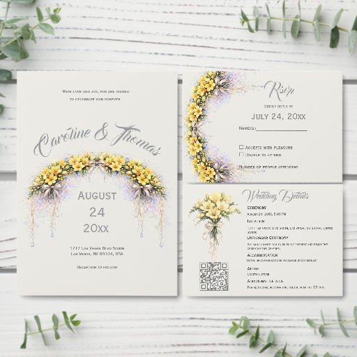The airy composition and elegant typography create a timeless look, perfect for spring and summer weddings, garden celebrations, and destination ceremonies.
