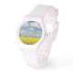 Uhr, Kinderuhr aus Edelstahluhr mit lila Lederarmband
