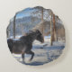 Cantering Black Percheron Pferd & Schnee Foto 2 Rundes Kissen