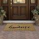 Zeigen Sie einen Stolz auf die Heimatstadt mit dieser benutzerdefinierten Türmatte, die "Zuhause" in Kalligraphie-Schriftzeichen mit einer Silhouette-Karte von Cape Cod, Massachusetts, stehend für den Buchstaben "O". Eine Herzillustrierung in der Karte vervollständigt das Design; Sie können die Position des Herzens in Ihre Zuhause- oder Strandposition ändern, indem Sie das Designwerkzeug öffnen und die Herzform ziehen. Personalisieren Sie mit Ihrer Zuhause Stadt, Familienname und Jahr etabliert, um eine perfekte Touch für Ihre Haustür zu schaffen, oder ein unvergessliches Hauswärmeschenk.