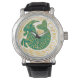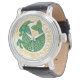 Capricorn-Zeichen des Zodiaks in grün und weiß auf einer Armbanduhr.
