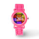 Uhr, Kinderuhr aus Edelstahluhr mit lila Lederarmband