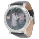 Uhr, Vintage Männeruhr mit schwarzem Lederarmband