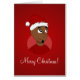Personalisiertes Design mit einer Illustration eines fröhlich lächelnden afroamerikanischen Mannes mit dem Hut des Weihnachtsmannes; mit bearbeitbarem Textvorlage, Weihnachtsfeierdesign mit rotem Hintergrund, von Radka Kavalcova