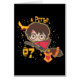 Check out this cute cartoon version of Harry Potter in his Quidditch Seeker uniform flying beside the golden snitch.