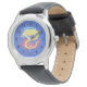 Kinder Edelstahluhr mit schwarzem Lederarmband