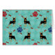 Niedlicher Miniatur Pinscher im Cartoon-Stil mit einer Streuung von Knochen und Pfotenspuren. Dieses Design ist dazu gedacht, nahtlos zu kacheln.